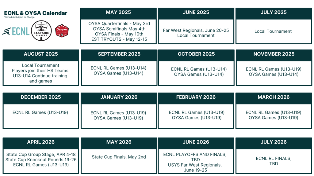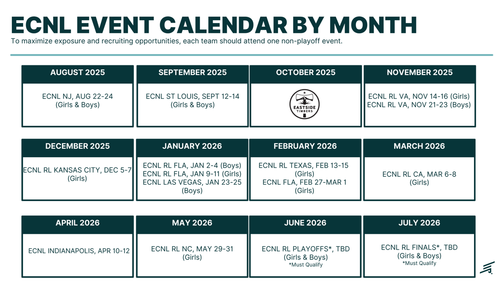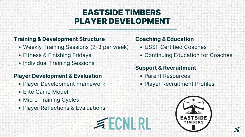 At Eastside Timbers, we provide an elite soccer experience designed to develop players at every level. Through our partnership with ECNL (Elite Clubs National League) and ECNL Regional League (ECNL RL), we offer an unmatched platform for player growth, competition, and exposure.
